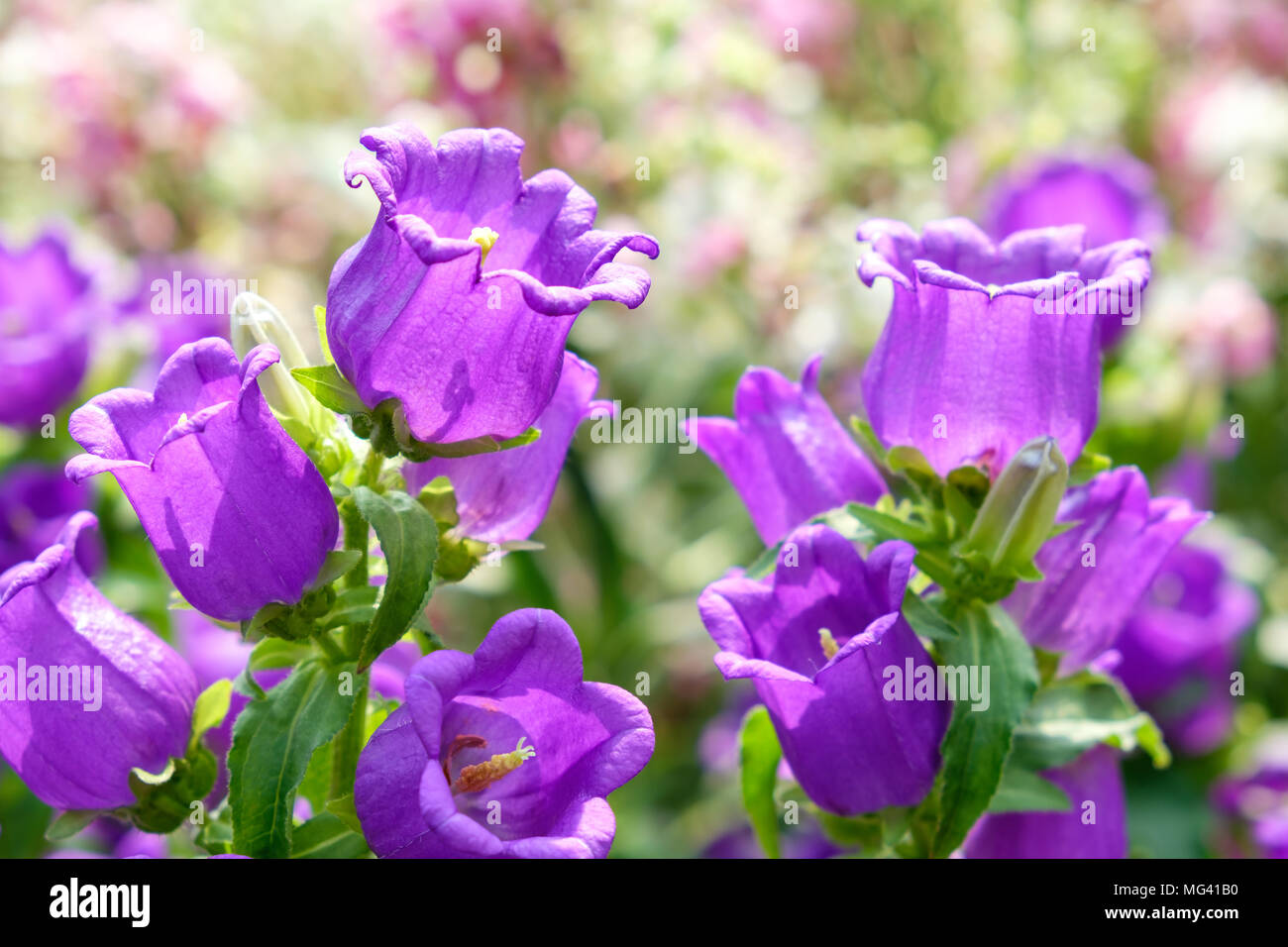 Discover an amazing canterbury bells flowers background image, ideal for personalizing your devices with vibrant colors and intricate designs.